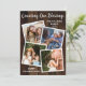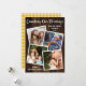Rustic woodsy falso madera oscura de manchas oscuras "Counting Our Blessings" cuatro fotos enmarcadas collage de diseño de las vacaciones de Acción de Gracias con un rústico patrón de chequeo amarillo dorado en la parte posterior. Simplemente agrega tu apellido y el año junto con tus fotos para completar el diseño. Diseño compuesto por Holiday Hearts Designs (derechos reservados) con fotos de marcadores de posición de plantilla cortesía de varios fotógrafos a través de Unsplash.