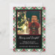 Este divertido Navidad o tarjeta de vacaciones presenta un diseño rústico hogareño con tu foto en un fondo diagonal de tartán o manto rojo y verde. La leyenda dice "Merry and Bright" y hay espacio para una breve nota y firma. Una forma maravillosa de enviar saludos esta temporada de vacaciones.