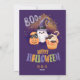 Tarjeta Festiva Saludo de Halloween lindo fantasma morado y calaba