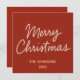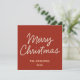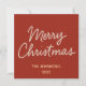 Saludo navideño escrito a mano con la tarjeta navideña de fondo rojo.
