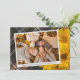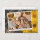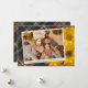 Tarjeta de vacaciones de Acción de Gracias única, elegante, moderna, bonita y decorativa. Con espacio para personalizar o personalizar con una foto y nombres (o apellido) de su elección. Con hermosas flores amarillas cálidas de otoño Mums en un diseño de fondo de patrón a cuadros tartán inspirado en la granja rústica. Y un poema de saludo de temporada personalizable en la parte posterior de la tarjeta.