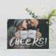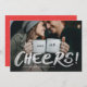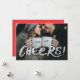 Esta divertida y festiva tarjeta fotográfica de Año Nuevo presenta un gran pincel acuático "¡Saludos!" en blanco contra una foto horizontal. Pasa la alegría de Año Nuevo con esta simple tarjeta. Ideal para parejas, familias y más, esta tarjeta de vacaciones es perfecta para una gran variedad de fotos. El dorso es un rojo vivo con un patrón de moqueta blanca.