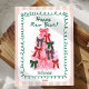 Tarjeta Festiva Saludos de árbol de año nuevo rosa verde dibujado