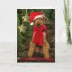 Airedale hermoso Terrier vestido en rojo contra el contexto de los árboles del invierno hace esto una tarjeta de Navidad para recordar.