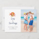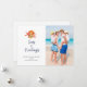 Tarjeta de felicitaciones de Navidad náutica de acuarela pintada a mano con concha y coral 'Seas and greetings'. Agrega tu foto familiar favorita.