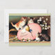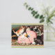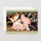 Tarjeta postal de saludos de Pascua antiguos. Pollito saliendo del huevo con tres gatos mirando.