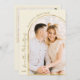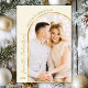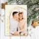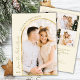 Elegante Tarjeta de felicitación de la temporada 5 del Arco de Oro. Celebre la temporada con un estilo atemporal con esta elegante tarjeta de festividad con un moderno marco de arco dorado en la parte delantera para su pareja o retrato familiar favorito. Personalízalo con tus fotos, nombre de familia y año sobre un suave fondo beige neutro. El diseño minimalista festivo se resalta con la tipografía de los Greetings de la temporada de oro falso, creando un ambiente cálido y sofisticado. La parte trasera muestra un collage de 4 fotos con un delgado borde dorado y espacio para un mensaje de vacaciones personalizado o nombres en un guión con letras a mano. Un diseño versátil que funciona maravillosamente para parejas, recién casados o familias, perfecto para compartir alegría y alegría navideña con sus seres queridos esta temporada.