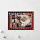 El diseño está compuesto por un patrón de cuadros/tartan rojo y negro. Agrega una foto personalizada tuya con tu gato mascota. La foto está adornada arriba con saludos dorados únicos - "Temporada para ser Meowwy"