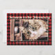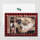 El diseño se compone de un patrón de cuadros escoceses/rojo y negro. Agrega una foto personalizada tuya con tu gato mascota. La foto está adornada arriba con saludos dorados únicos - "Temporada para ser Meowwy"