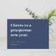 Esta tarjeta de vacaciones de Navidades corporativos Business Greetings es perfecta para las empresas que desean enviar elegantes saludos de vacaciones. Con un elegante fondo azul con un audaz mensaje "Saludos a un próspero año nuevo", está diseñado para un ambiente profesional. La tarjeta incluye un logotipo de personalizado colocado en la parte posterior, lo que hace que sea una forma única y personalizada de desear éxito a sus clientes, socios y empleados el próximo año. Celebre la temporada con estilo y profesionalidad utilizando esta moderna tarjeta de vacaciones de ambiente corporativo.