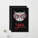 Celebra Feliz Día de San Valentín con esta graciosa y linda carta que incluye un lindo gato con gafas de sol que muestra " AMARTE ". Todos los textos están preorganizados para que puedas personalizarlos fácil y rápidamente con los tuyos. Disponible como tarjeta plana, tarjeta plegada y postal. Diseñado para coordinar con nuestra colección "Tienda de Regalos El día de San Valentín". Por favor visite nuestra tienda para más diseños.