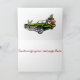 Tarjeta Festiva Santa afroamericana en un auto vintage con regalos