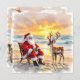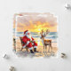 Tarjeta Festiva Santa and Reindeer at Beach Personalized Christmas
