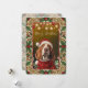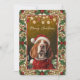 Spread holiday cheer with this absolutely adorable Christmas card featuring a sweet basset hound dressed as Santa in a red suit and hat, framed by an ornate gold border with classic holly leaves, red berries, and golden ornaments. Perfect for dog lovers, hound owners, or anyone who believes Santa’s best helper has long ears and a droopy face! Premium cardstock with rich, festive colors – inside blank or customizable. The cutest, classiest way to wish everyone a very Merry Christmas!