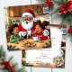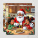 A lovely Christmas card with an adorable scene of an African-American Santa eating chocolate chip cookies and drinking hot chocolate together at the Christmas table cartoon. On the back is a sweet holiday poem that you can leave, edit or remove in the personalize area.
