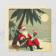 Tarjeta Festiva Santa Claus antiguo de vacaciones en una playa tro