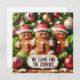 Hombres de pan de jengibre disfrazados de Santa Claus con las palabras "Vinimos por las galletas".