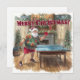 Serve up some festive fun this season with this cheerful holiday card! Santa Claus, dressed in a bright Hawaiian shirt and red shorts, is mid-action playing ping pong, bringing playful energy to your Christmas greetings. The vibrant watercolor illustration includes tropical and festive details like palm trees, ornaments, candy canes, and gifts, making it perfect for friends, family, or table tennis enthusiasts. A lively, whimsical design that spreads holiday cheer and tropical Christmas vibes.