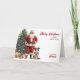En la parte delantera de esta bonita tarjeta de saludo de Navidad, un perro de la Frontera Collie lleva una reverencia roja y se sienta al lado de Santa Claus. Al lado hay un árbol de Navidad decorado, una cesta de regalos de mimbre y paquetes envueltos. El texto del guión rojo a la derecha dice "FELIZ NAVIDAD", con el FELIZ AÑO NUEVO en verde debajo. Su firma personalizado está en verde y rojo en la parte inferior. Todo el texto, dentro y fuera, puede cambiarse fácilmente a lo que quieras. Puedes ver más imágenes de Border Collie, así como otras imágenes de raza, en Dog Village.