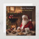 Tarjeta de Navidades personalizada con Santa María sentada en una sala de estar con una hermosa chimenea y árboles de Navidad, comiendo las galletas de los niños para él. Este diseño fue creado por Debbie Quick de Debs Creative Images: www.debscreativeimages.com