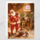 Tarjeta Festiva Santa en el establo de renos