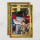 Santa feliz con nieve y luces brillantes -- sensación vintage para el marco y la parte posterior. Tarjeta plana con saludo en el reverso.