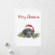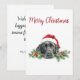 Desea a amigos y familiares una Feliz Navidad con esta tarjeta nostálgica que presenta un adorable labrador negro con un sombrero de Santa. Personaliza el sentimiento y la firma.