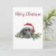 Desea a amigos y familiares una Feliz Navidad con esta tarjeta nostálgica que presenta un adorable labrador retriever negro que lleva un sombrero de Santa. Personalice el sentimiento y la firma.