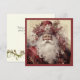 Esta imagen es una tarjeta de Navidad antigua que presenta a un Santa Claus negro con estilo Rococó. La tarjeta muestra a Santa Claus con un abrigo y sombrero rojo ciruela con acentos florales rosados. Los colores de la imagen son principalmente rojo, blanco, rosa con acentos de marrón oscuro. El tema general de la imagen es festivo y tradicional, representando a la figura icónica de Santa Claus durante la temporada de vacaciones.