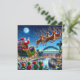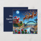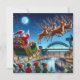 Santa y sus renos pasan por encima del río Tyne en su trineo, con la zona de Quayside iluminada bajo ellos. Sus elfos saludan con emoción mientras señalan el estadio del Newcastle United a lo lejos.