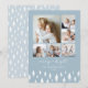 A modern yet festive holiday card design with minimalist vibes, our Scandi Trees photo collage card features 6 square photos with "merry & bright" beneath in hand sketched script lettering. Personalize with your family name and the year, set atop a bottom border of hand drawn pine trees on a soft winter blue background.