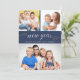 Tarjeta Festiva Script Happy New Year Typography 3 Photos Blue