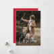 Comparte la alegría de la temporada con estas modernas tarjetas de fotos de vacaciones, mostrando tu foto vertical con "Feliz Navidad" elegantemente escrito en escritura manuscrita blanca. Añada un toque personal personalizando el diseño con su apellido y el año, creando un saludo memorable y sincero. En la parte trasera hay un fondo rojo clásico adornado con puntos blancos sutiles, que añaden un acabado festivo e intemporal. Perfecto para extender la alegría de las vacaciones, estas elegantes tarjetas de personalizable impresionan.
