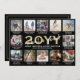 Tarjeta Festiva Script What a Year! 12 Photo Collage Black & Gold