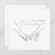 La tarjeta moderna de San Valentín presenta un dibujo de una mano sosteniendo con la leyenda 'Sé mi San Valentín' y tipografía moderna. Mensaje personal en la parte posterior de la tarjeta.