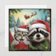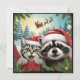 Tarjeta Festiva Selfie de gato con el trineo de Santa Mapache extr