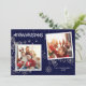 Este diseño es una simple y elegante tarjeta de navidades minimalistas en azul marino oscuro con 2 marcos de fotos para fotos de Navidades familiares. Este diseño tiene obras de arte minimalista en frambuesas y bayas, campanas, copos de nieve, flores de poinsettia y mucho más. En la parte trasera del diseño hay un patrón de copos de nieve y estrellas. Puedes personalizar todos los detalles y añadir tus propias fotos. Vea toda la colección coincidente.