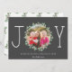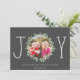 Esta sencilla y moderna tarjeta fotográfica navideña incluye la palabra "JOY" con una colorida corona de vegetación y bayas rojas. Incluya su propia foto familiar en el centro de la corona. El color de fondo es un gris de carbón rico. Algunos componentes del diseño fueron proporcionados por Freepik. Visita nuestra tienda para ver nuestra completa colección de tarjetas de vacaciones y accesorios de juego.