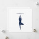 A minimalist art card featuring a graceful figure in Tree Pose, hands lifted in a gesture of offering and connection. Set against a clean white background, the design conveys calm, balance, and heartfelt intention.