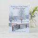 Embrace the magic of the season with this enchanting Christmas card, featuring a serene winter landscape. Snow-draped trees and a charming wooden fence adorned with festive bows set the scene for a "White Christmas that is Merry & Bright." The elegant typography adds a classic touch, perfectly capturing the holiday spirit. Share this picturesque greeting with loved ones to spread warmth and joy. Order today to add a festive touch. Pair with matching pieces.
