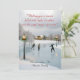 Embrace the enchanting spirit of the season with this beautifully designed Christmas card. Featuring a serene winter scene with ice skaters gliding across a frozen pond, this card captures the warmth and joy of the holidays. The elegant typography and festive accents make it a perfect way to send your warmest wishes. Order today to add a festive touch to your holiday greetings. Pair with matching pieces.