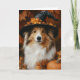 Celebra la aullante diversión de Halloween con esta adorable tarjeta de bruja de Shetland Sheepdog que seguro va a conseguir sonrisas.
