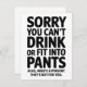 Lo Siento, No Puedes Beber Ni Encajar En Pantalones. Además, aquí hay un regalo que no es para ti sarcástico Baby Shower
