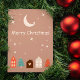 Simple tarjeta navideña con bonitas casas y árboles navideños disponibles en un fondo de color de dos cálidos tonos tierra. El tipo de letra clásico pero delicado le da un aspecto de época muy seductor, al tiempo que lo mantiene tierno y sencillo. El diseño es excelente para saludos ocasionales de temporada, se puede dar a los compañeros de trabajo, a los profesores de los padres, a los amigos y a la familia.