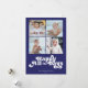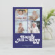 Estas tarjetas de felicitación planas Hanukkah de 5" x 7" presentan un diseño minimalista con el saludo "Happy All the Days" (Feliz todos los días) en letras blancas sobre un fondo azul real con marcadores de posición para cuatro (4) de tus fotos favoritas, nombres de familia y año.