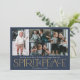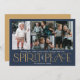 Estas simples tarjetas de felicitación con fotos de las vacaciones incluyen el saludo, "Deseándote una Feliz Navidad y un Feliz Año Nuevo", junto con el saludo, "Espíritu de paz", en grandes letras de oro y marfil sobre un fondo marino con marcadores de posición para agregar cuatro de tus fotos favoritas, nombre de familia y el año.