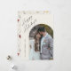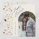 Tarjeta Simple Script Boho Arch Felices Fiestas. La parte trasera tiene un patrón de flores silvestres. Haga clic en el botón personalizar para personalizar este diseño con sus datos.