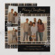 Diseño de franela de cuadros rústico y elegante con tres áreas de fotos personalizadas, y nombres personalizables, año y mensaje de vacaciones.