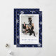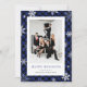Foto azul tarjeta Happy Holidays con copas de nieve sobre fondo azul búfalo trenzado. Personalice fácilmente esta tarjeta de vacaciones de fotos de negocios con su foto y nombre de empresa.