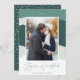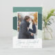 Una moderna y elegante tarjeta de vacaciones en colores suaves con tu foto favorita vertical o orientada a retratos sobre un fondo de color de nevada en tonos de abeto y verde cazador. "Joyous Hanukkah" aparece debajo de un hermoso guión escrito a mano, con tu nombre de familia debajo.